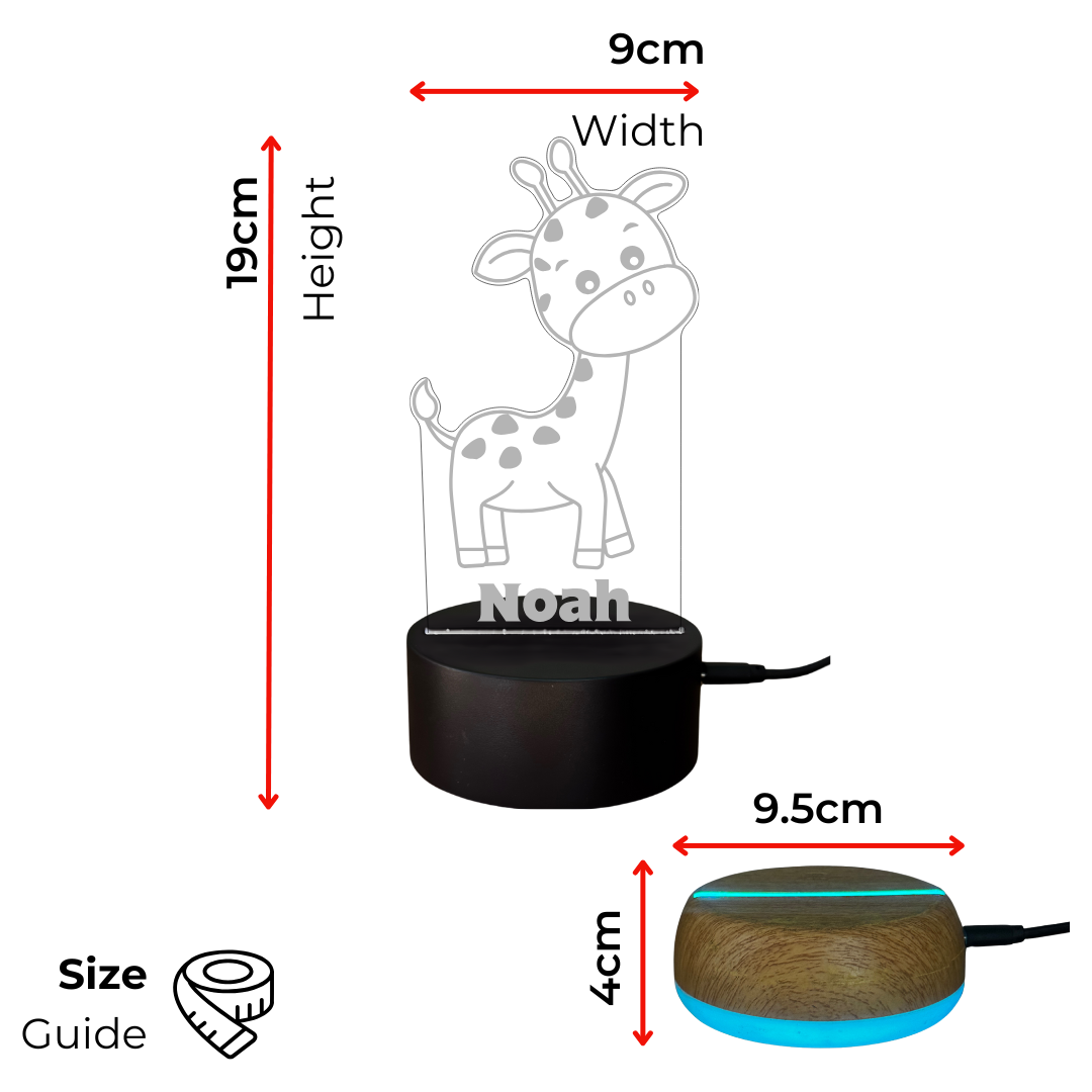 Whether placed on a bedside table, shelf, or dresser, this custom giraffe night light adds a magical, cosy glow to any room. It's a thoughtful keepsake that kids will treasure and parents will love.
