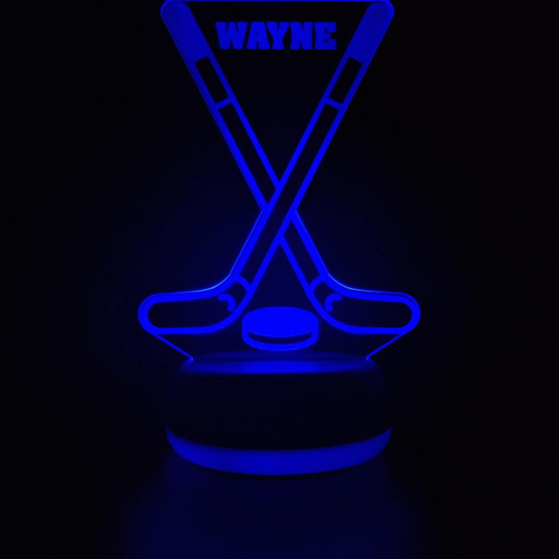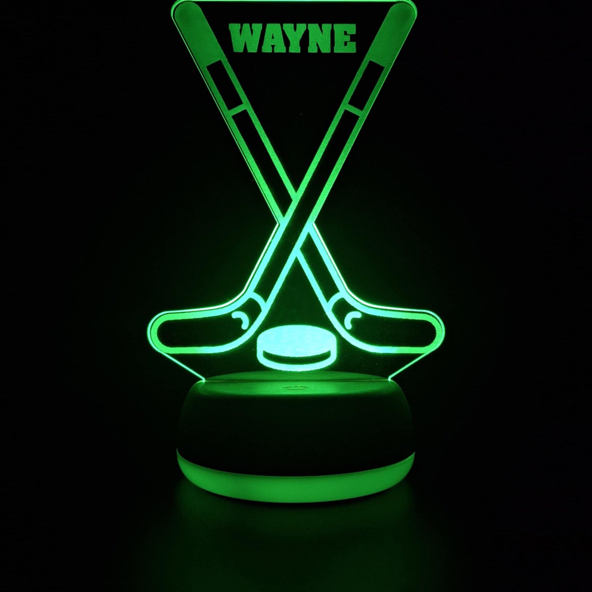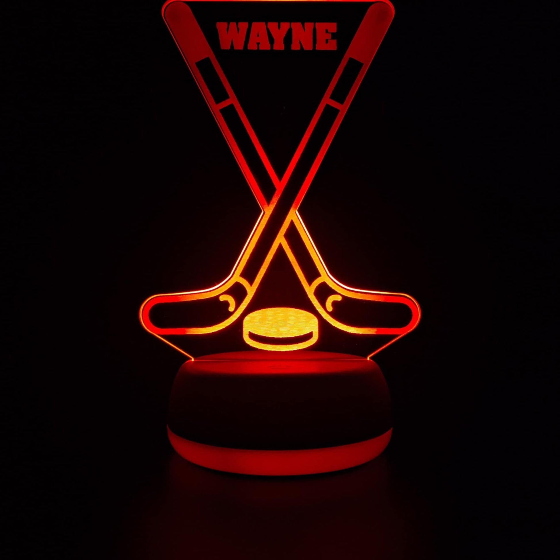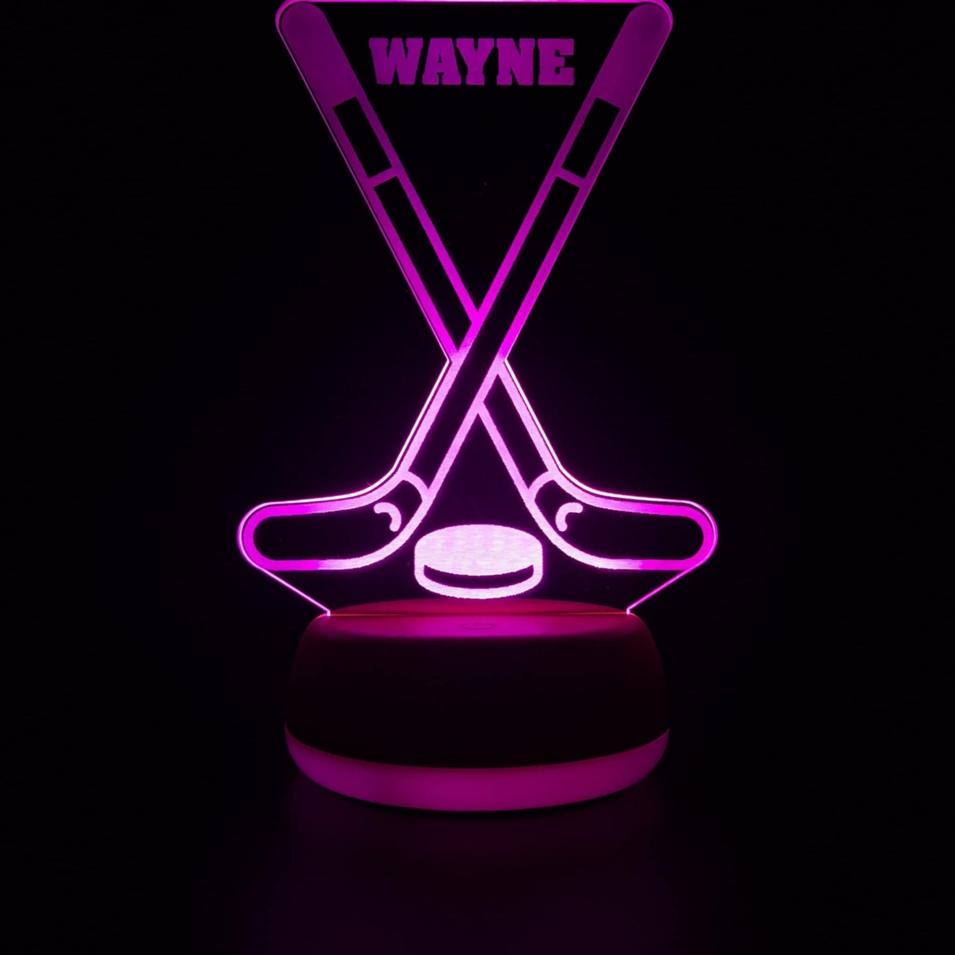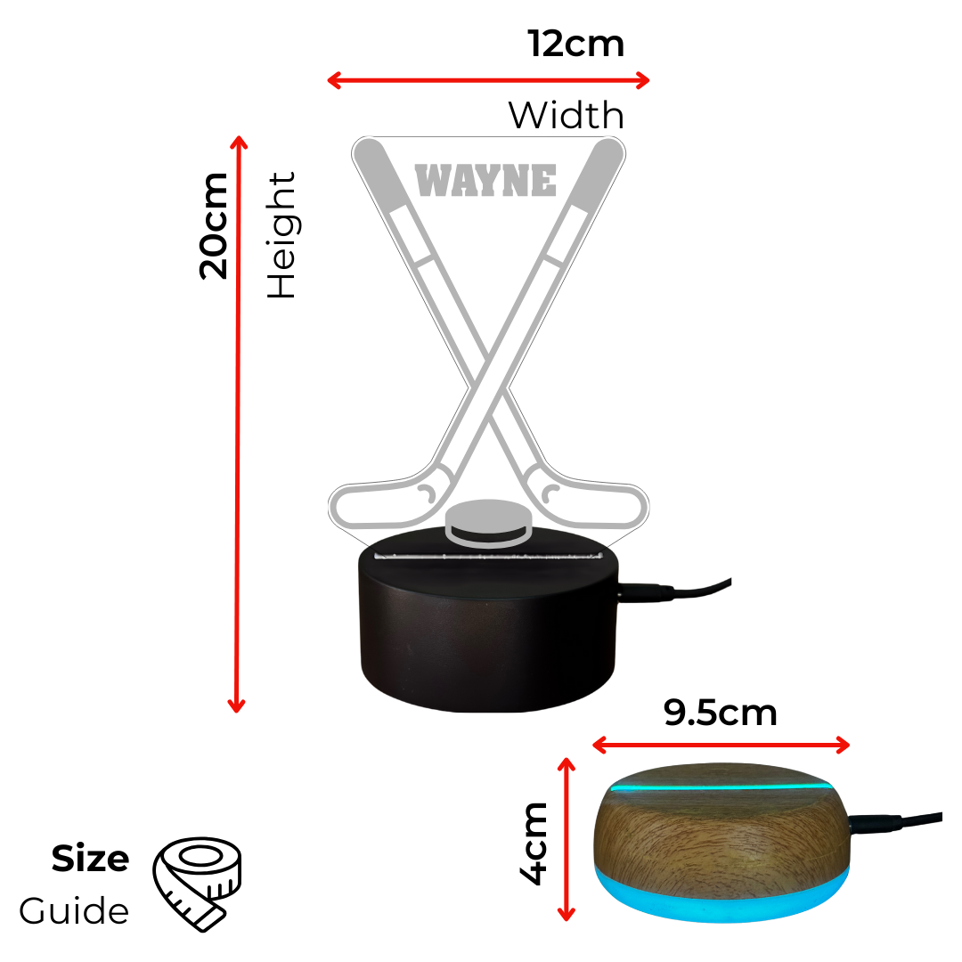 The LED base lights up the engraved acrylic design in a variety of colours (choose your favourite or cycle through!), creating a calming atmosphere at night. Great as a birthday gift, Christmas present, or team award, this custom hockey lamp is sure to impress.