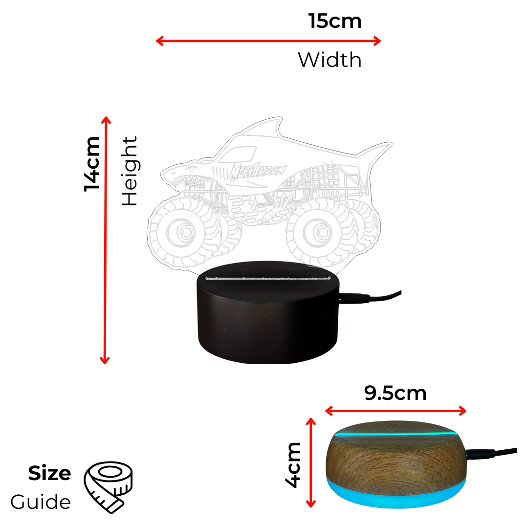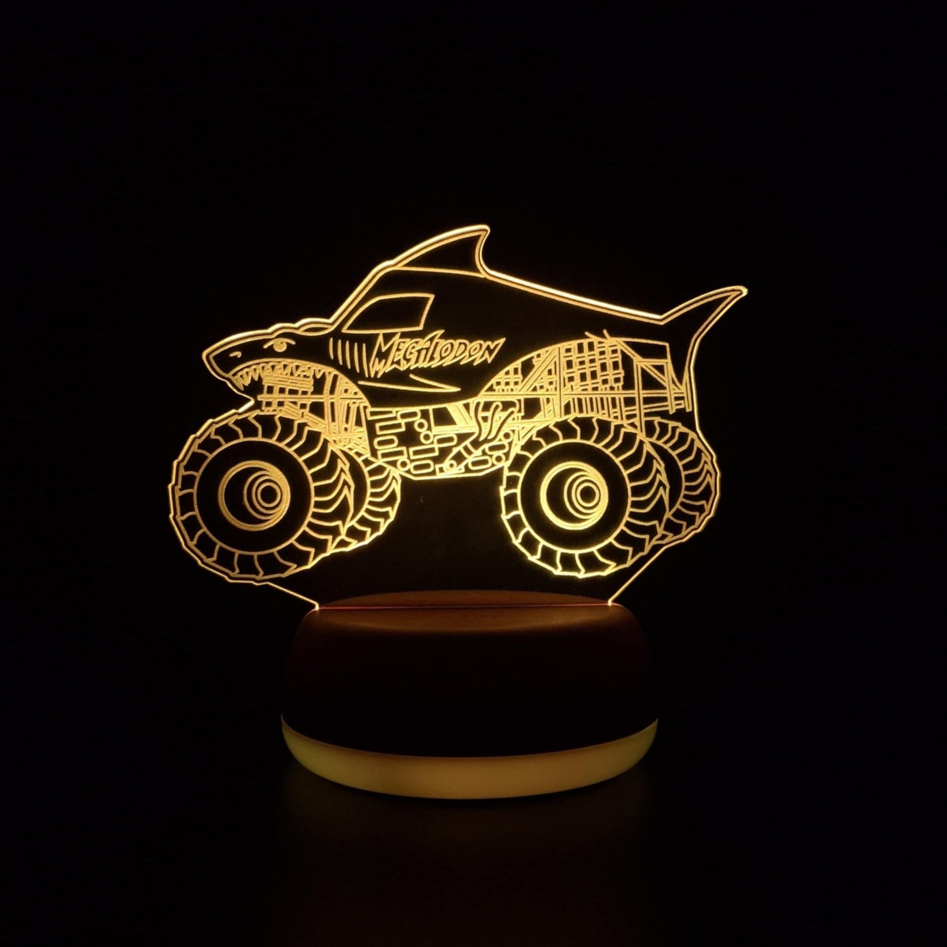 This personalised Megalodon Monster Truck LED night light is the ultimate gift for young monster truck fans and adrenaline-loving kids. Featuring a laser-engraved design of the iconic Megalodon truck and customisable with your child’s name, this striking acrylic night light glows softly—making it the perfect addition to bedrooms, playrooms, or themed party decor. Set on a sleek wooden or colour-changing LED base, it’s both fun and functional, providing a comforting glow at night and a bold visual statement during the day. Whether for a birthday, Christmas, or just because, this Megalodon night light is a roaring hit for any little monster truck enthusiast.